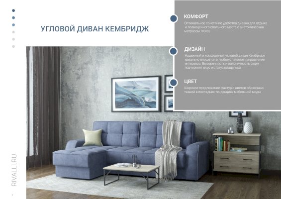 Угловой диван Кембридж (Rivalli) – товар доступен к покупке в интернет-магазине voronezhskiy-dommebeli.ru. Цена – 140 984 руб. без учета доставки. Стоимость дополнительных услуг и сроки получения мебели уточняйте у менеджера. Возможен безналичный расчет, оплата по карте на сайте.