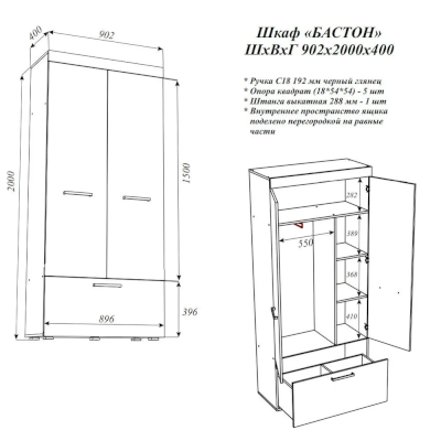 Шкаф Бастон (Эра) – товар доступен к покупке в интернет-магазине voronezhskiy-dommebeli.ru. Цена – 12 452 руб. без учета доставки. Стоимость дополнительных услуг и сроки получения мебели уточняйте у менеджера. Возможен безналичный расчет, оплата по карте на сайте.